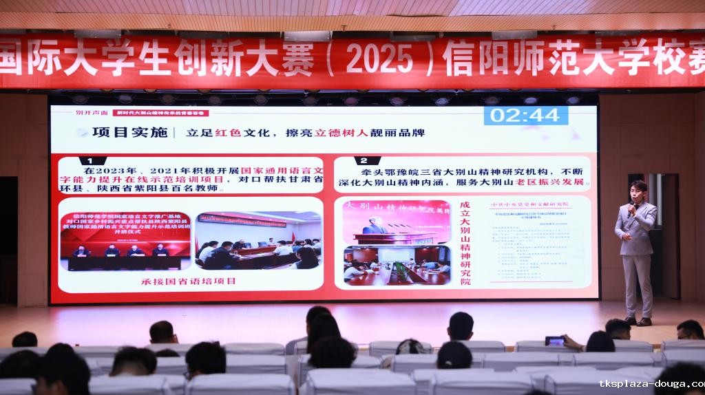 信阳师大新闻网讯 6月6日,中国国际大学生创新大赛(2025)我校校级决赛在理科楼报告厅举行。党委副书记、工会主席岳宗德出席并颁奖。大赛邀请政、校、企等领域优秀创新创业专家组成评审小组,相关职能部门负责人、指导教师及参赛学生共200余人一同观摩。