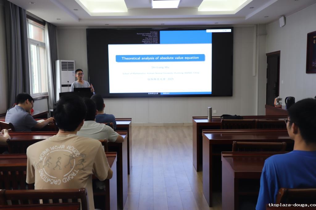 6月8日,应数学与统计学院邀请,云南师范大学吴世良教授在数学楼315会议室作了题为《Theoretical analysis of absolute value equation》的学术报告。报告会由计算数学方向带头人李世顺教授主持,部分教师及研究生参加。